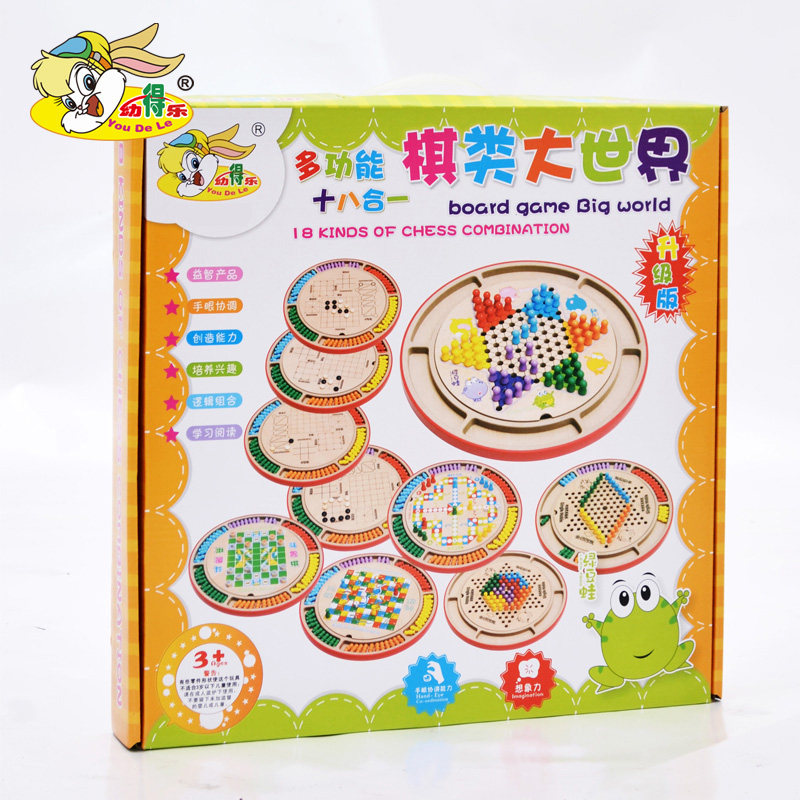 Young Children's eighteen All-in-one Checkers Five Sub-Battle Chess Children Chess Children Children Early Teach Wooden Toys Flight Chess