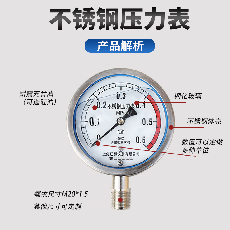 YN100BF stainless steel shockproof 0 6mpaYN100BF stainless steel shockproof 1mpaYN100BF stainless steel shockproof 1 6mpaYN100BF no