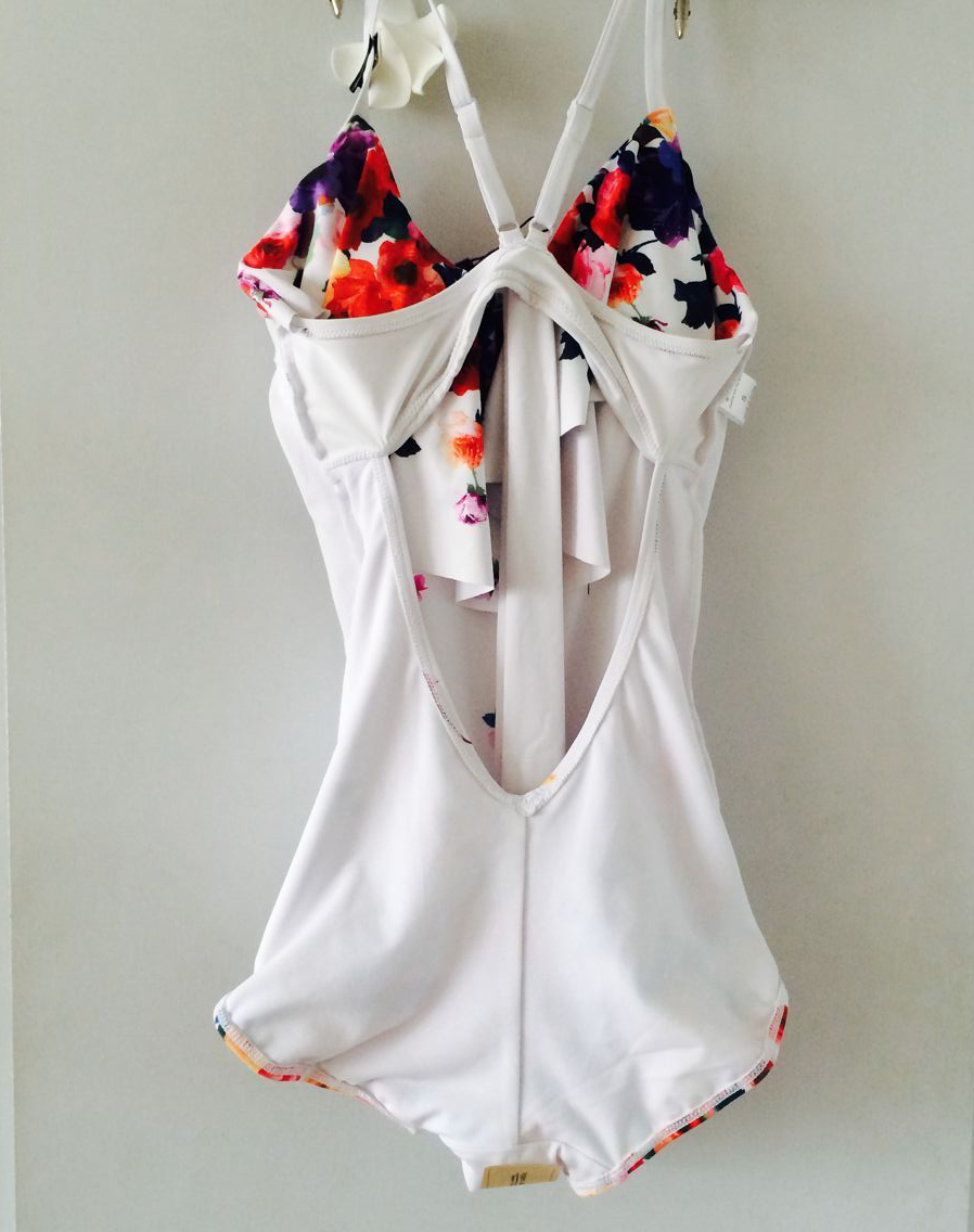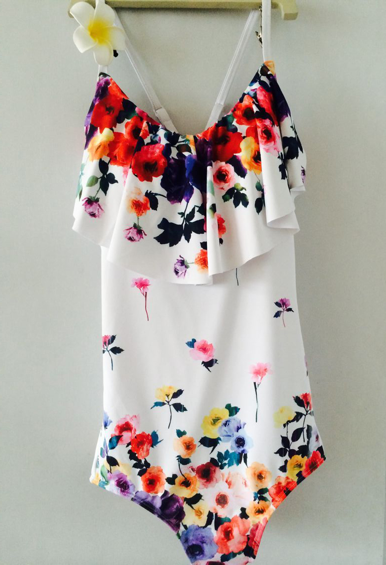 Take a good picture of swimsuit white flower field steel button with swimsuit with small chest gathering lotus leaves for vacation swimsuit
