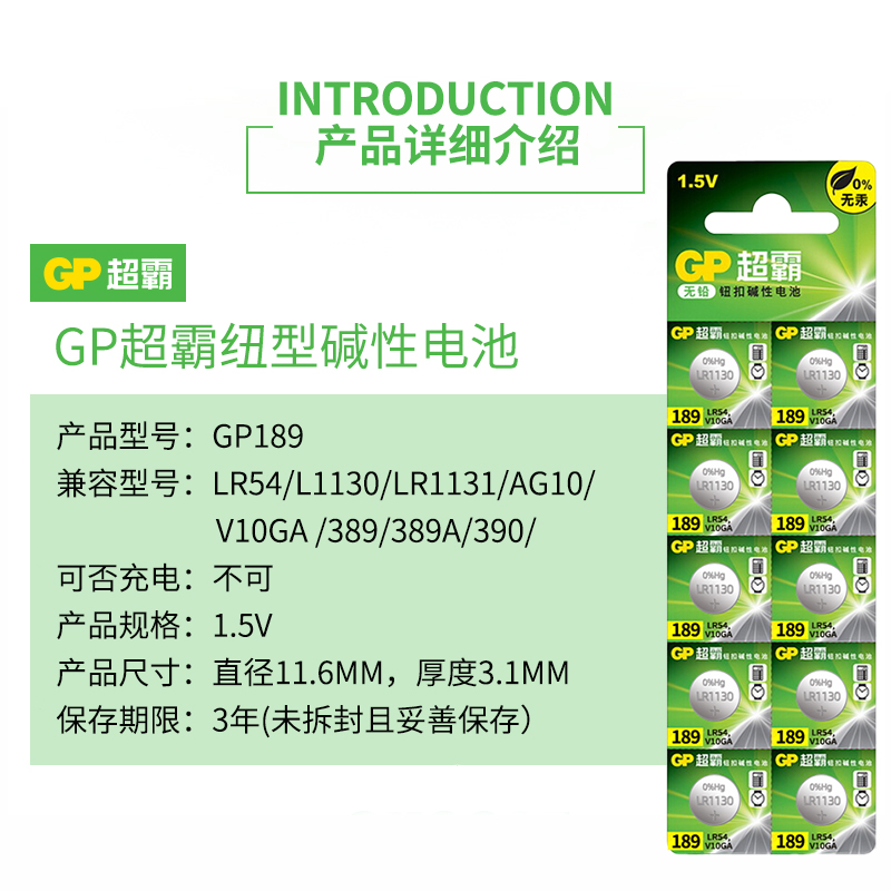 GP Hyperbarometer AG10 AG10 LR1130 LR1130 LR54 LR54 LR54 189389390 suitable for electronic watches thermometer CASIO calculator