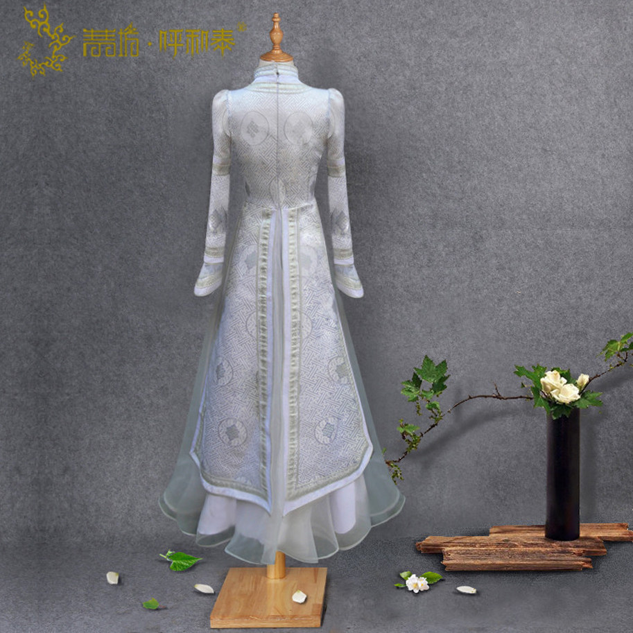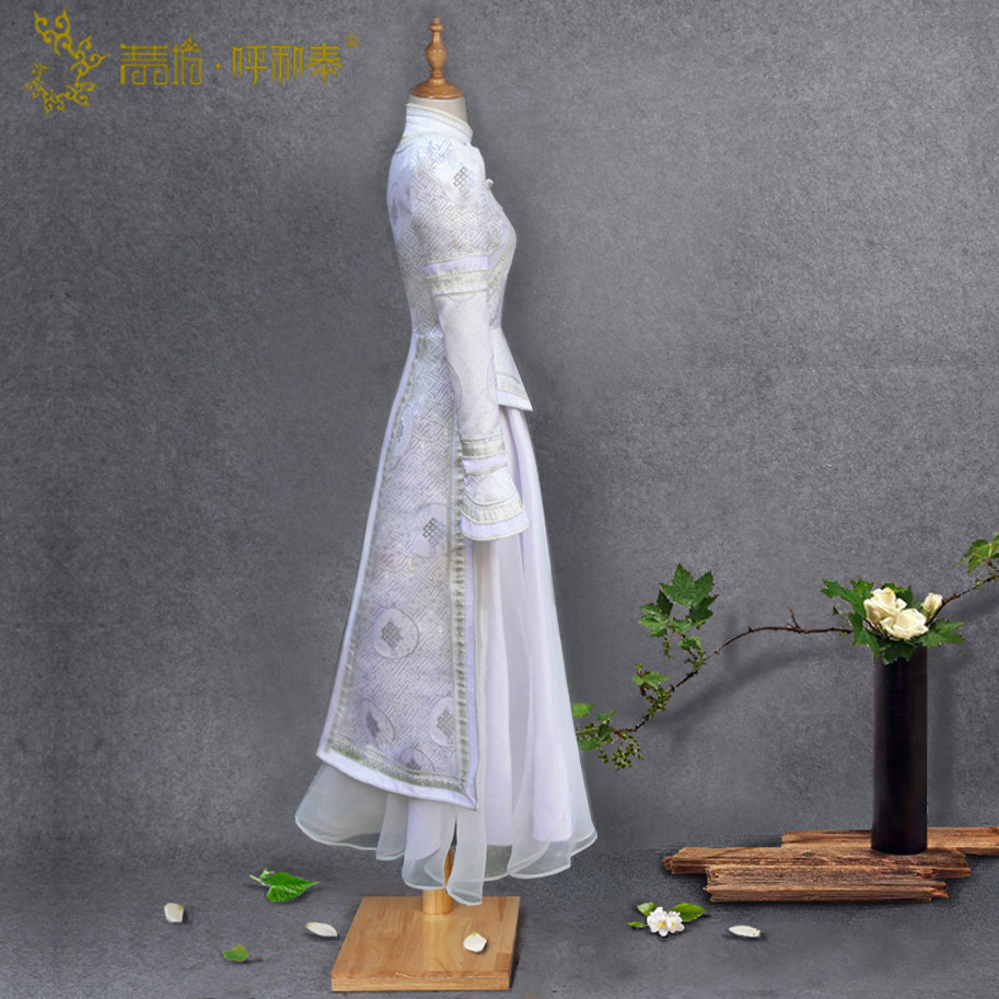 (Qingqingfang Hetai) custom Mongolian fashion dress white original design ethnic style