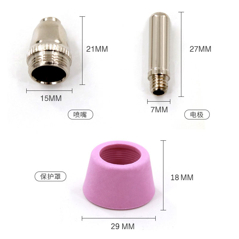 AG60 electrode + nozzle 20 sets (zirconium wire) AG60 electrode + nozzle 20 sets (copper wire) upgraded electrode + nozzle (20) boxed AG60 zirconium wire electrode (20) AG60 ordinary nozzle (20) AG60 hafnium wire electrode (20) boxed AG60 thickened nozzle (20) boxed AG60 protective sleeve (10) AG60 round handle gun head AG60 two-color high-quality tip