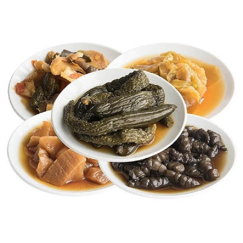 Cucumber Lettuce Radish Carrot Big head Mustard Melon Ginger Pagoda Sweet sauce Water Wheat flour Skimmed soy Salt Sugar