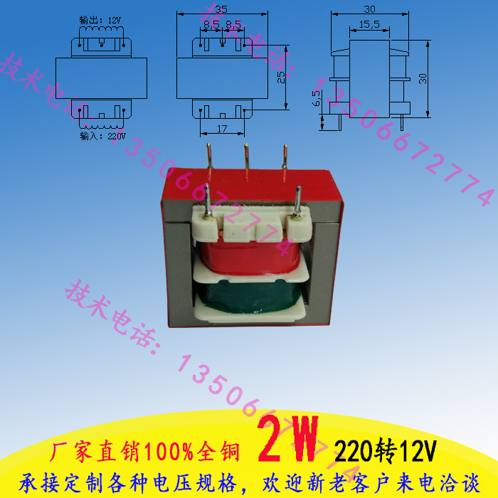 Factory direct 2W W 220V to 12V small black clip power transformer PCB relay EI voltage can be customized
