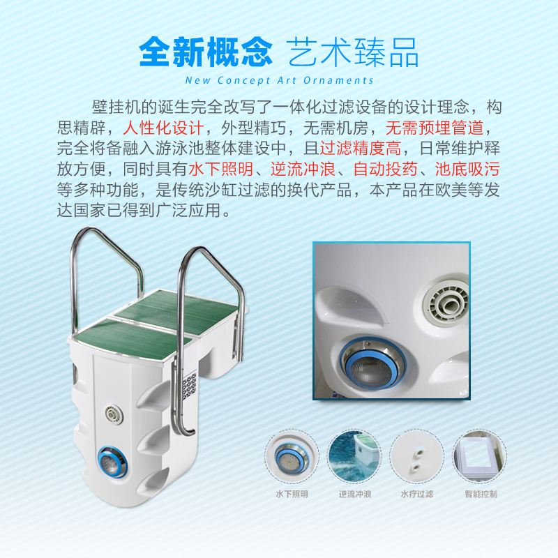 POOLMATE Swimming Pool Wall Mounted All Water Treatment Purification Circulation Equipment System Wall Mounted Machine Filter