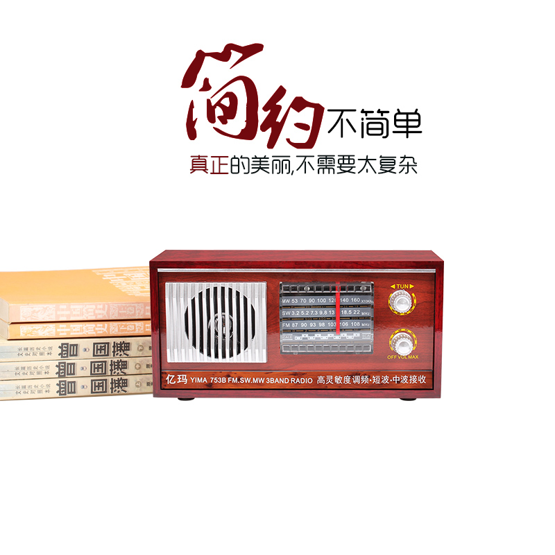 Full band 753B old man radio retro desktop wooden antique portable semiconductor plug-in collection display
