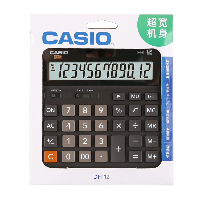 casio CASIODH-12 wide black calculator 12 digits solar power large business office fashion cute electronic computer financial accounting big button big screen white