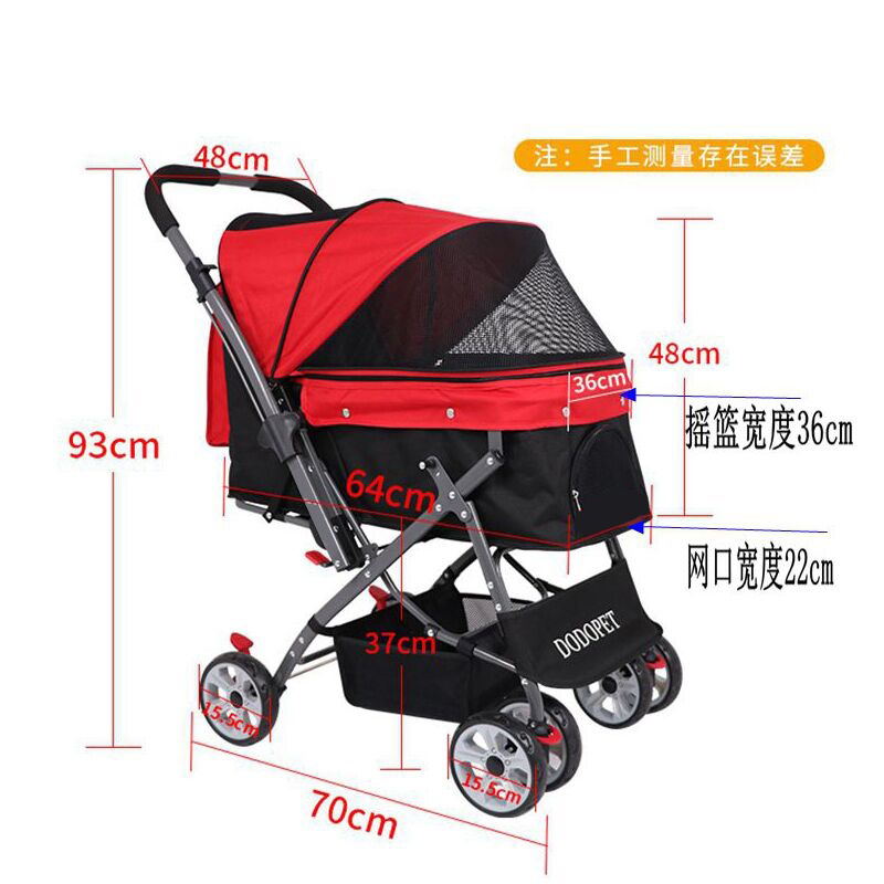Dog Cart Pet Stroller Dog Four Wheels Dog Cart Big Space Cat Dog Folding Push Car Outside Travel Supplies