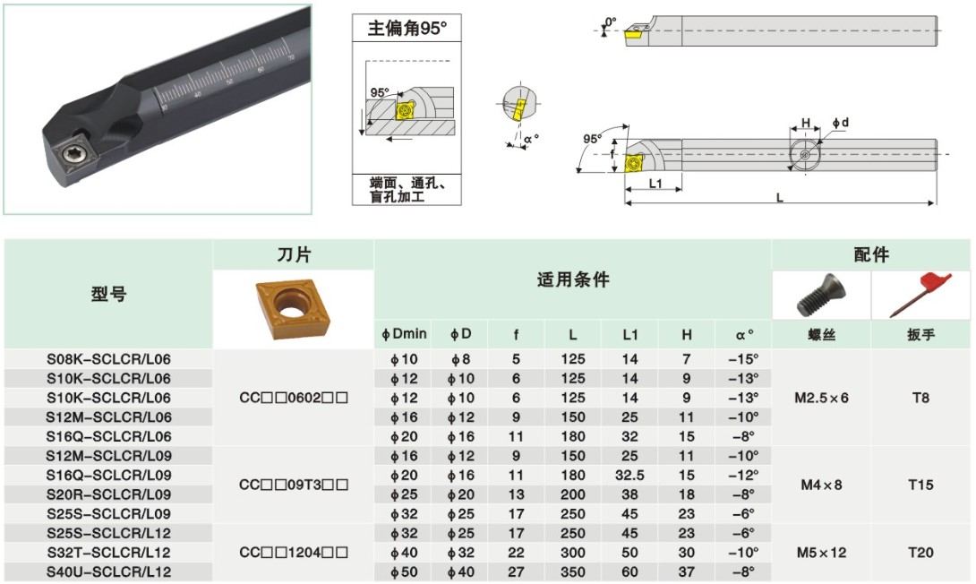 95 degree hole CNC tool holder S06K S07K S08K S10K S12M-SCLCL SCLCR06 09
