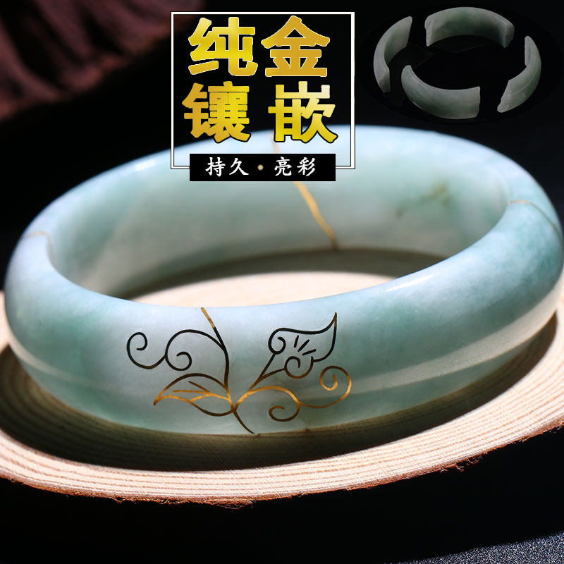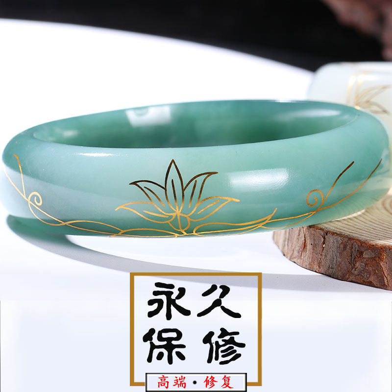 Broken jade bracelet repair repair Jade bracelet crack pattern fracture incognito repair Jade gold inlaid jade gold