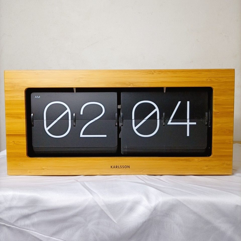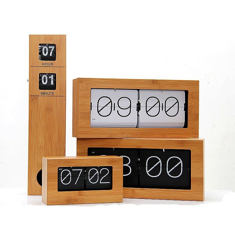 Miao engraved creative fashion simple three-hole bamboo wood metal automatic page-turning clock wall clock hanging wall page-turning clock