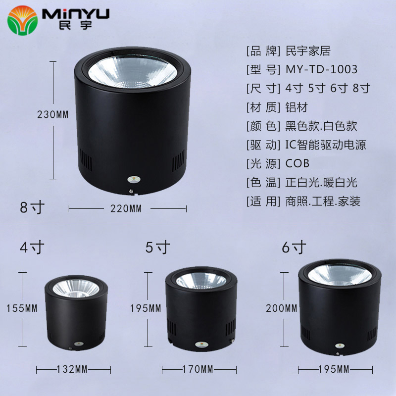 6 inch 30W-black shell warm white light 6 inch 40W-black shell warm white light 6 inch 40W-black shell positive white light 5 inch 20W-white shell positive white light 8 inch 5