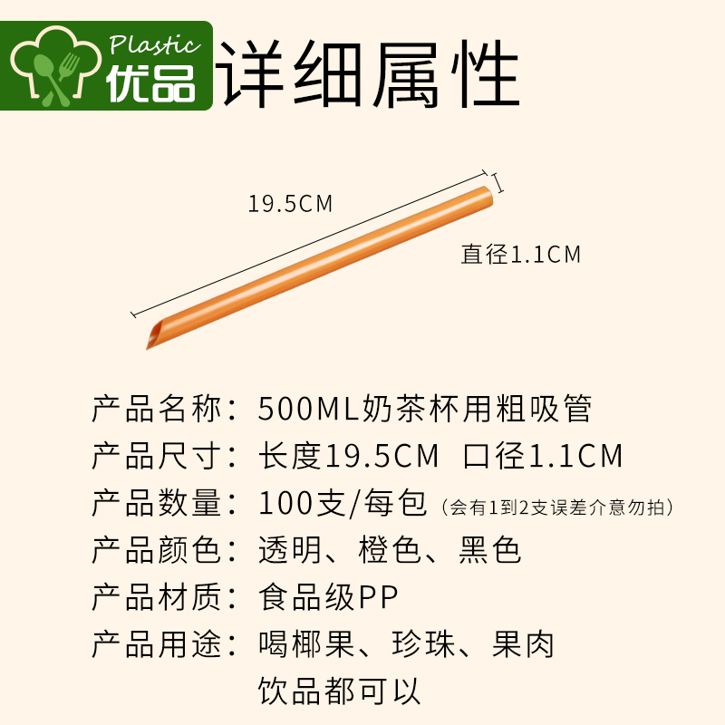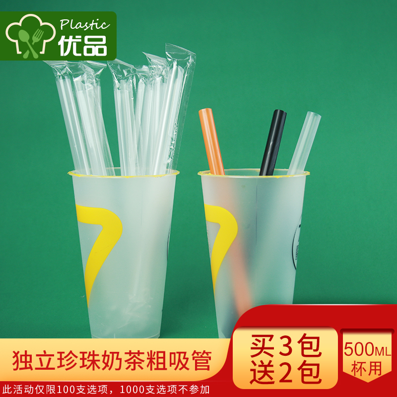 Disposable transparent thick tube 19cm single packing pearl milk tea straw 500ml milk tea cup straw 1000pcs