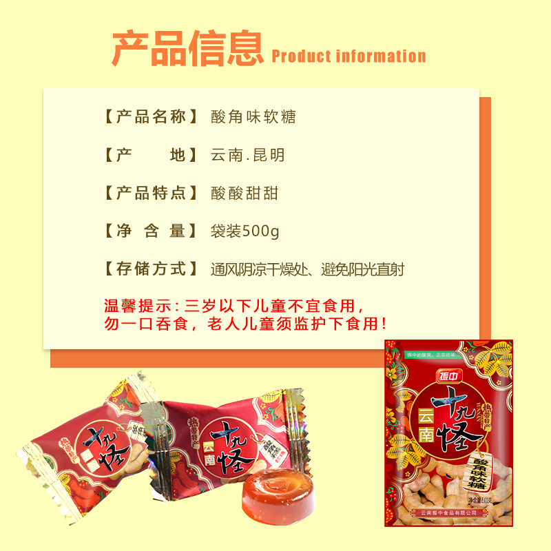 Zhenzhong nineteen Strange Acid Corner Pastry Soft Sugar 500g Yunnan specialic Acid Sweet Appetizer Pregnant pregnant with a snack Snack Candy Freeze