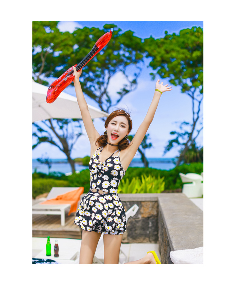 2020 new girl one-piece flat-angle skirt type belly cover thin conservative cute sweet floral hot spring women's swimsuit