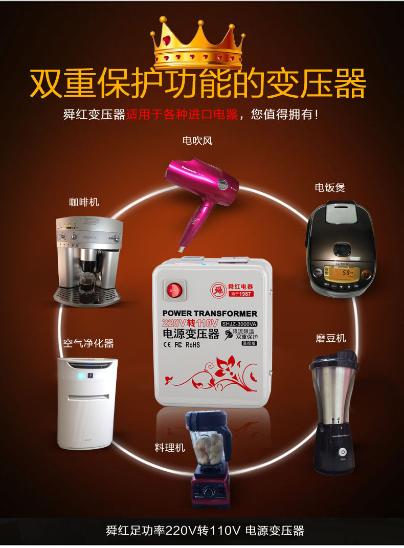 Shunhong transformer 220v to 110v full 3000w Japanese rice cooker American cooking machine voltage converter