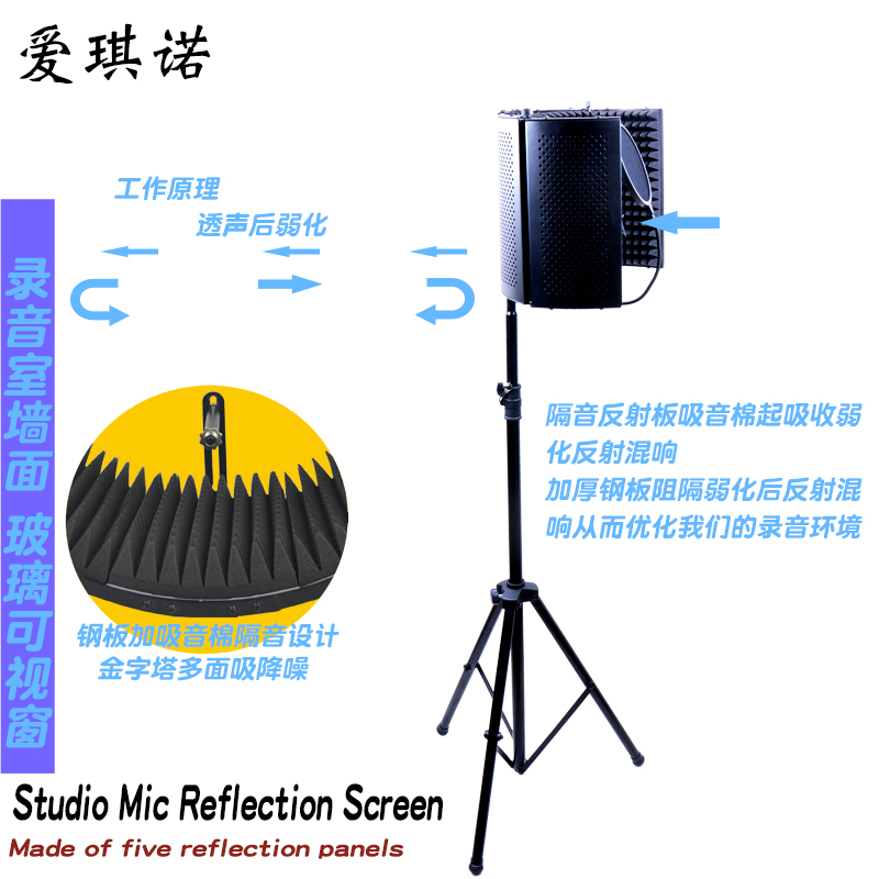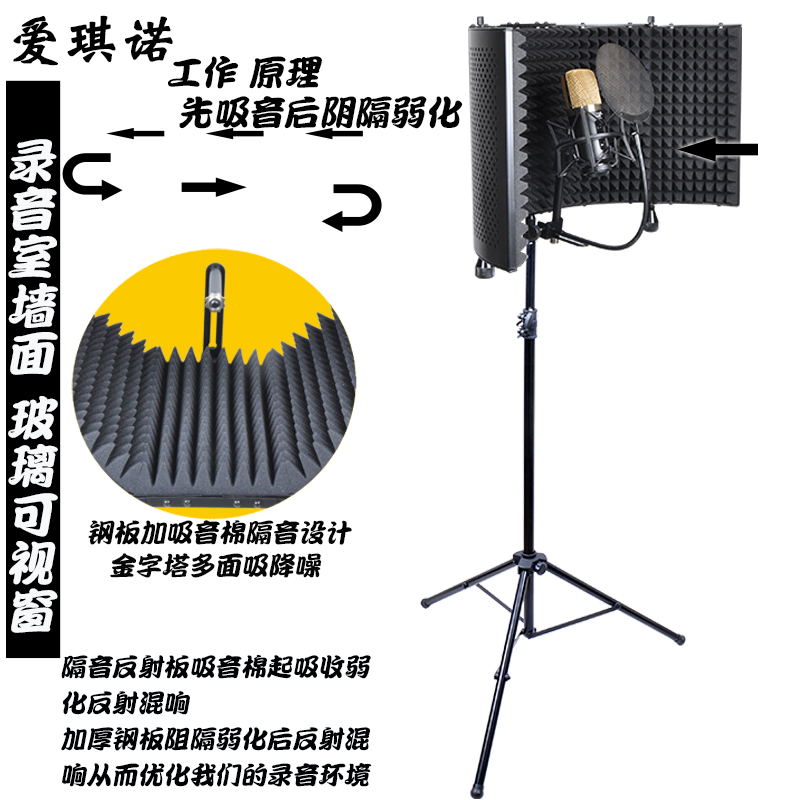 Aquino black floor-standing tripod recording microphone windscreen metal professional condenser microphone sound insulation board