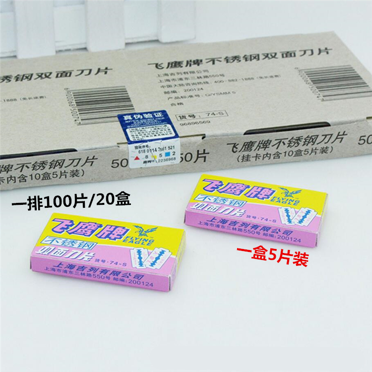 Shanghai Flying Eagle brand double-sided blade 74S stainless steel blade Manual shaving shaving eyebrow trimming blade