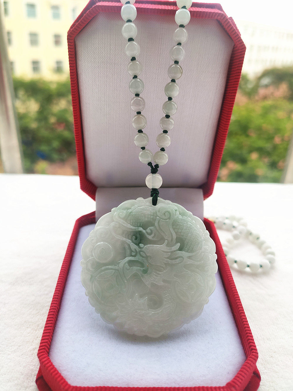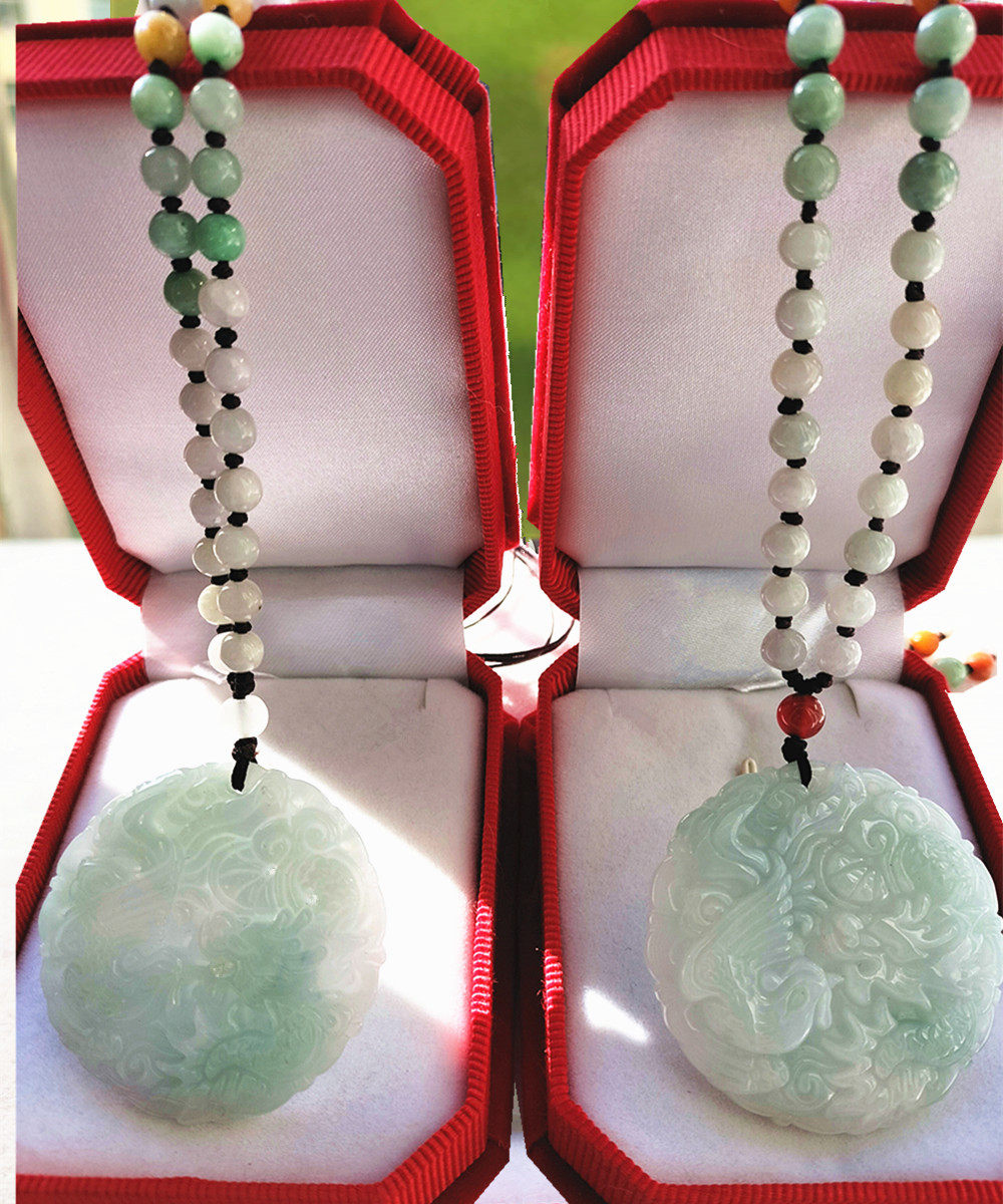 Dragon phoenix pendant one + jadeite bead necklace Tyrannosaurus rex brand pendant + jadeite full bead chain dragon phoenix pendant one + emerald oval necklace dragon phoenix pendant one + ordinary lanyard round dragon card + standard lanyard dragon phoenix pendant one + white bead necklace dragon phoenix pendant one + white rice grain whole bead chain couple + dragon phoenix jade + certificate + packaging box
