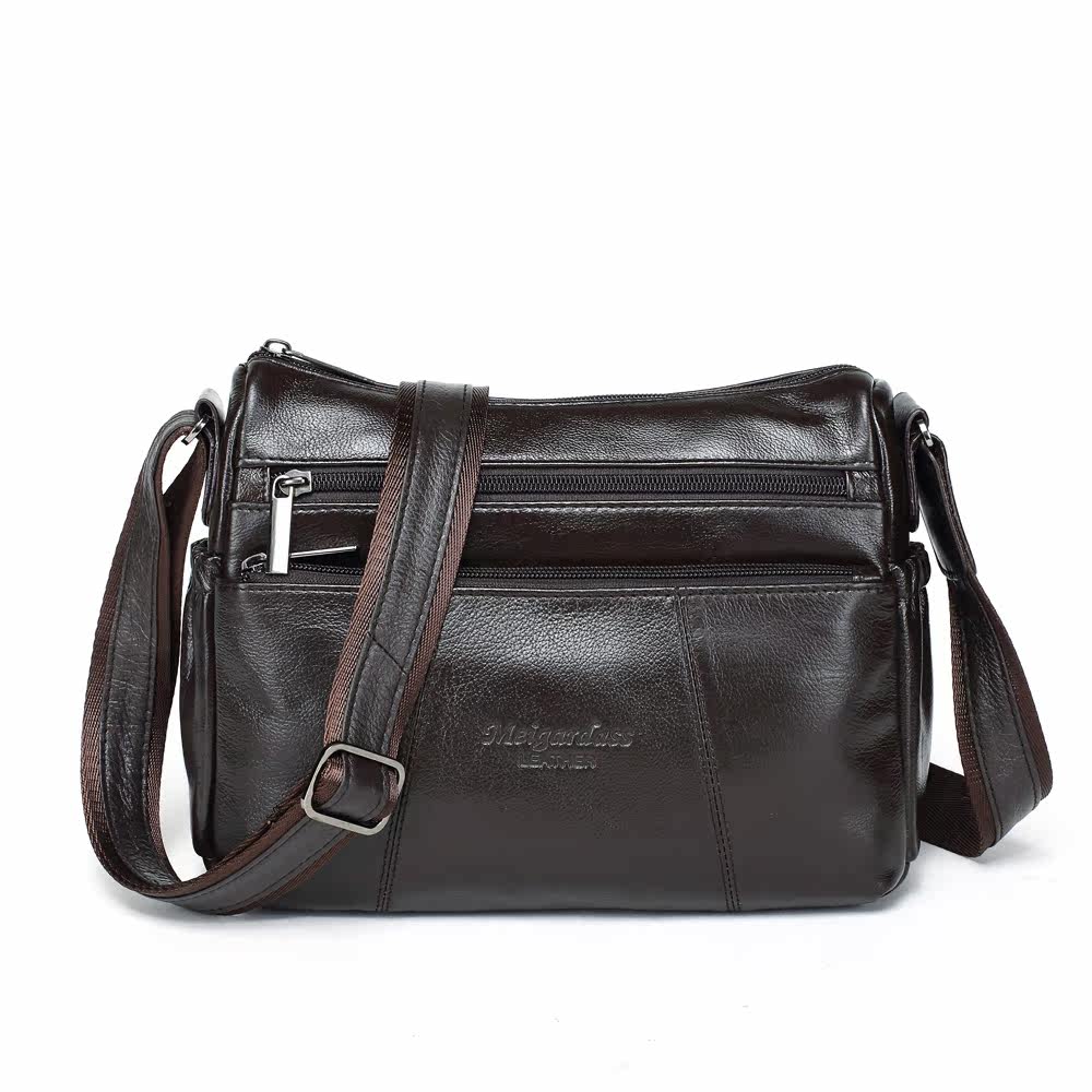 Gold Coral Skew Satchel Bag Middle Aged Woman Bag Single Shoulder Baotou Layer Cow Leather Mother Bag Genuine Leather Girl Satchel Bag