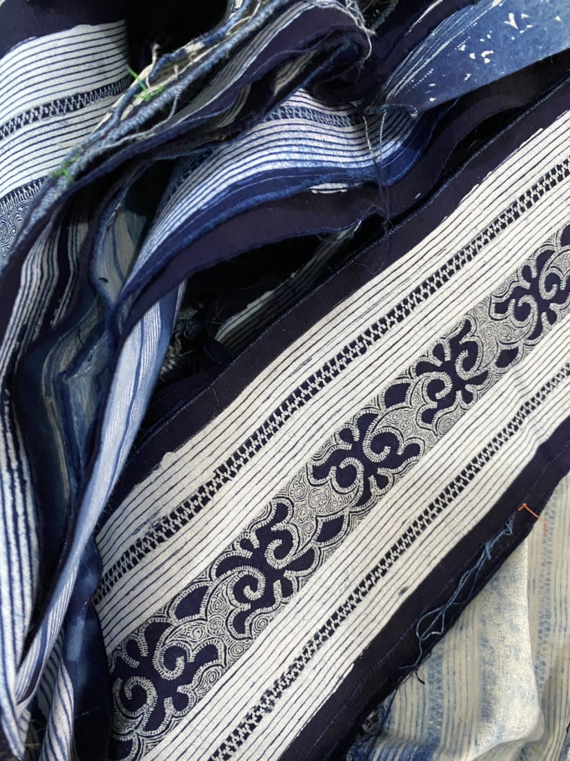 Old embroidery pieces Old batik Miao handmade batik ethnic handicrafts Old batik cloth strip T299