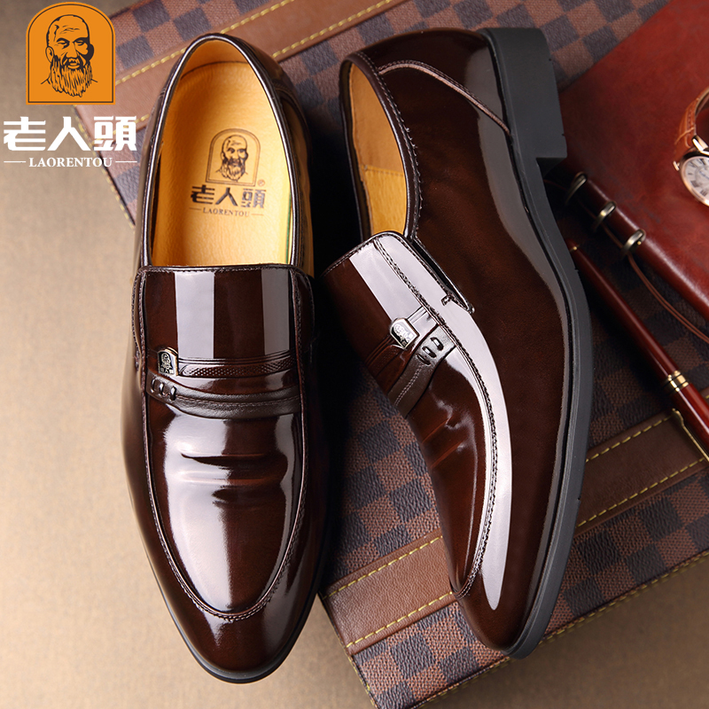 Old man's head spring men's shoes genuine leather pointed business positive dress leather shoes men Inn cow leather hollowed-out and breathable leather sandals