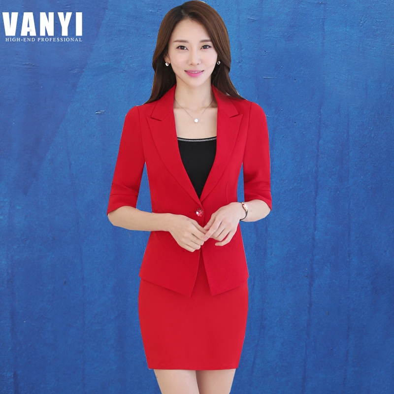 Summer spring and autumn work clothes Women's suit Slim mid-sleeve small suit skirt OL formal beautician overalls
