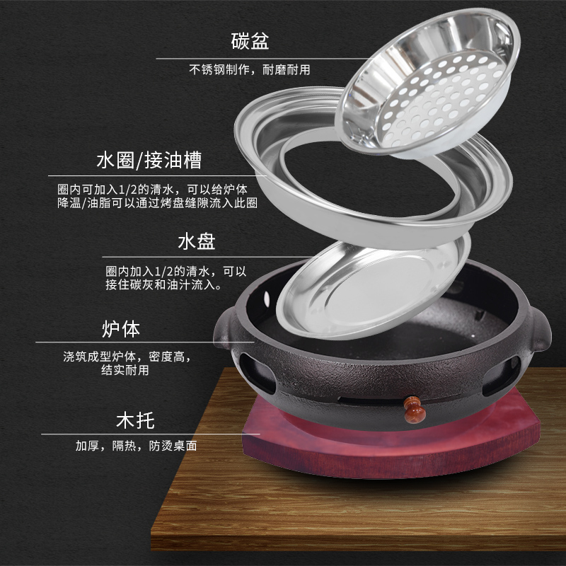 Korean-style cast iron stove charcoal fire round cornucopia barbecue pot Japanese-style smokeless charcoal barbecue stove charcoal grill commercial