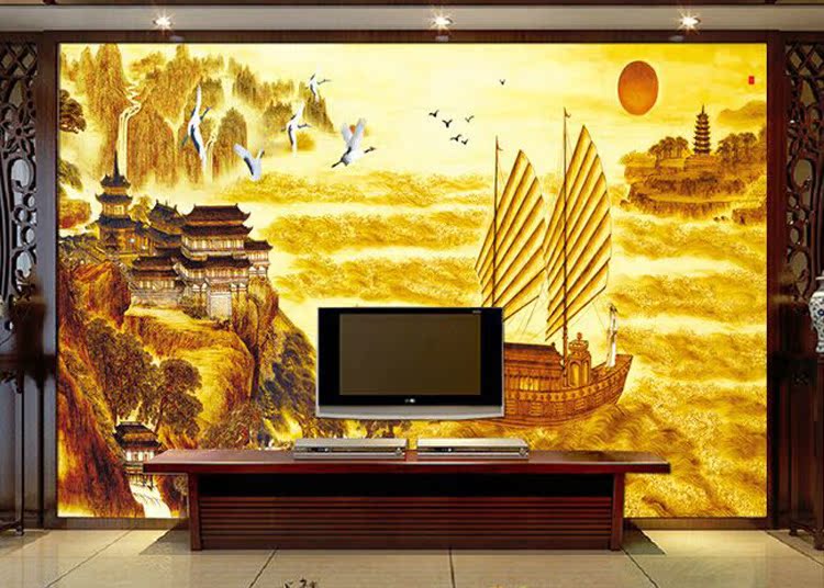 Tile background wall TV living room background wall Sofa background wall Art carving background wall Smooth sailing