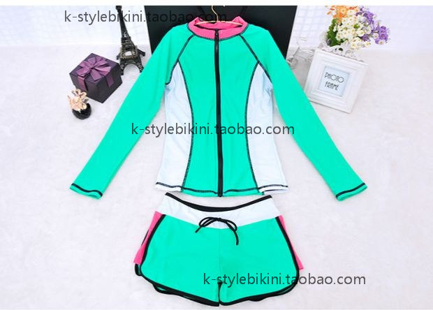 Green swimsuit Two-piece green jacket Top Green boxer shorts