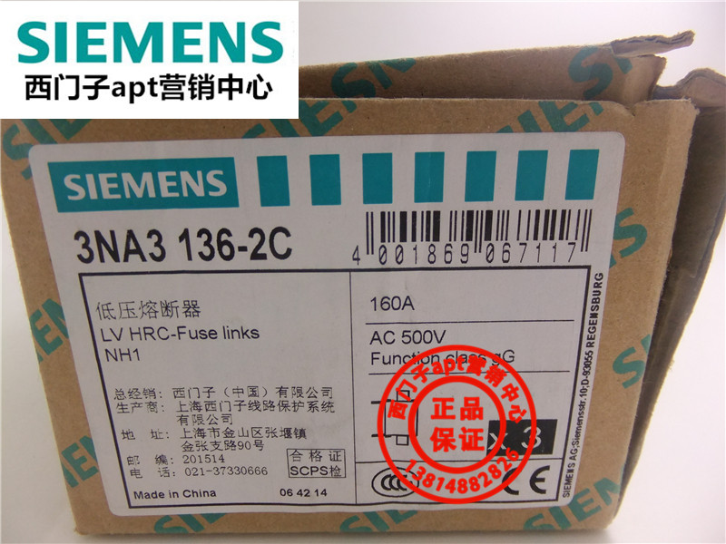 (False one penalty ten) Siemens fuse 3NA3136-2C NH1-gG 160A 500V core