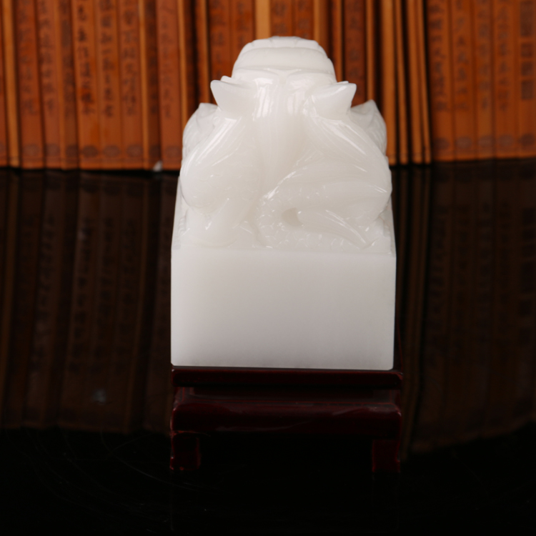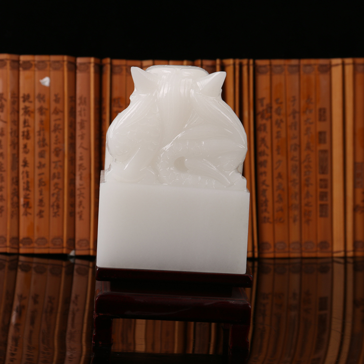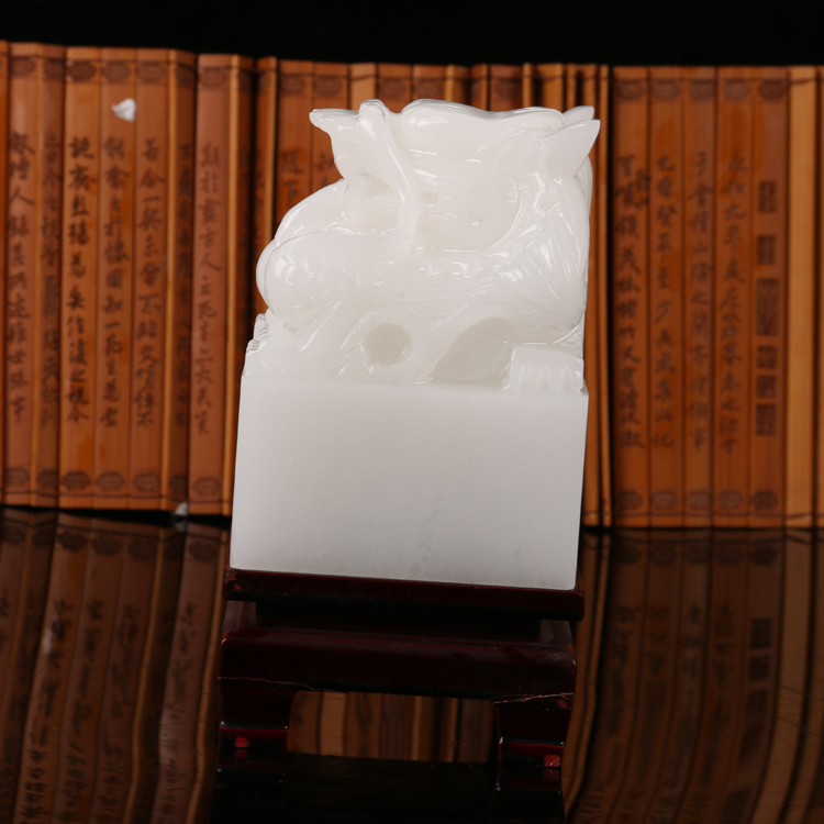 Afghanistan white jade seal, plate longyu seal, swing the business gift of vomiting Xiang Ruilong big jade seal