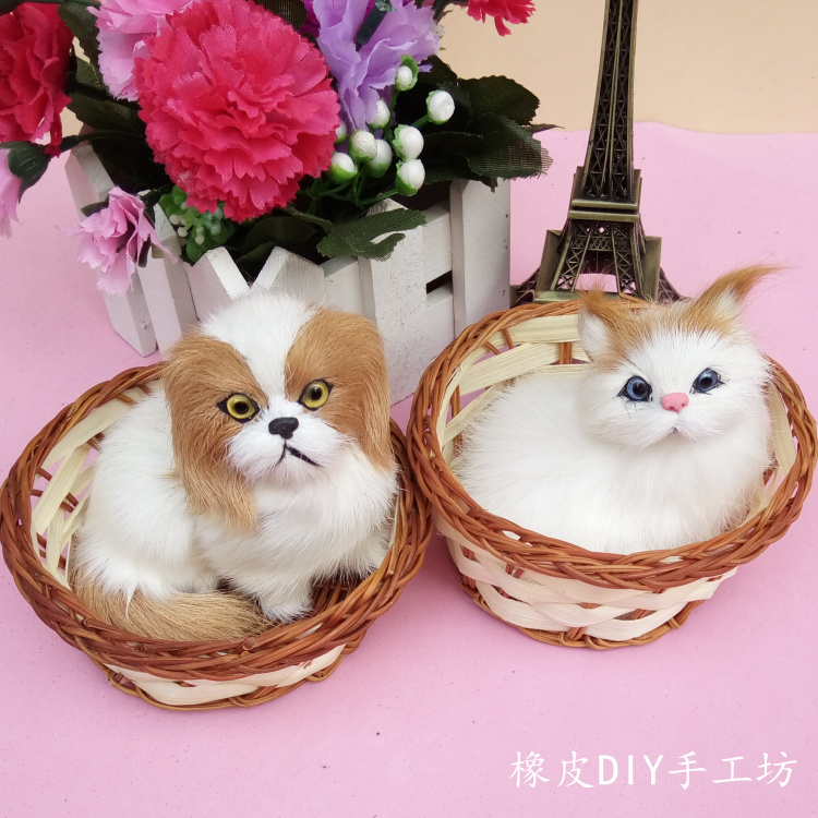 Real fur emulation Animal cute little kitty pure handmade to send basket art for a birthday