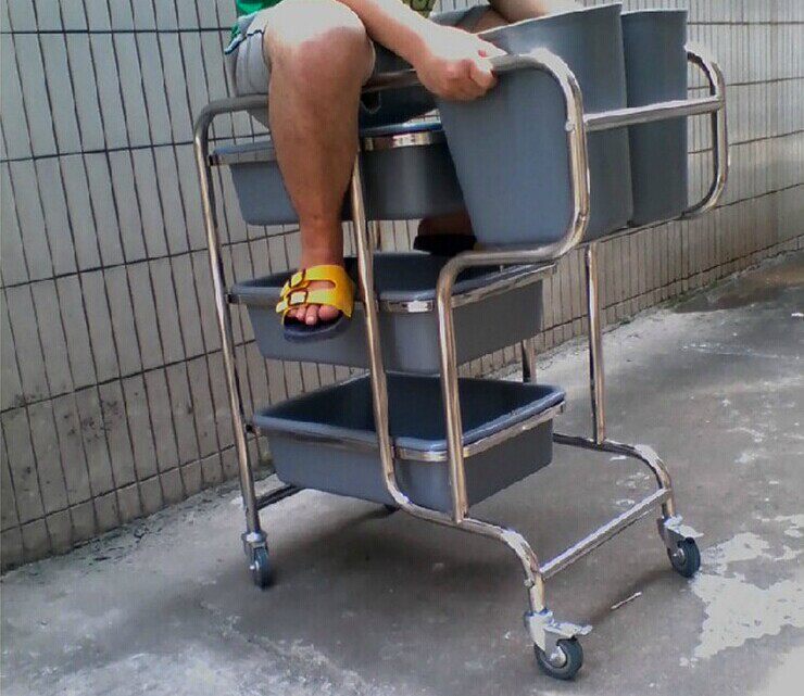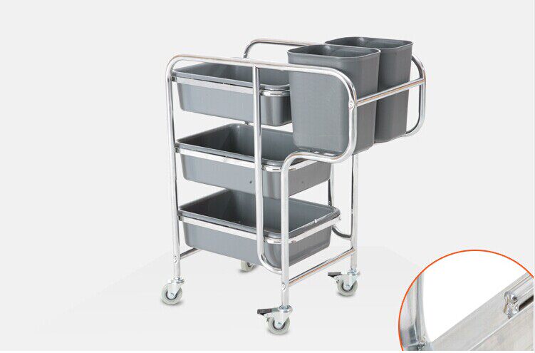 Stainless steel dining car thickened cleaning cleaning collection cart Three floors Multi-functional containing cart Kitchen Large Size Collection Bowl