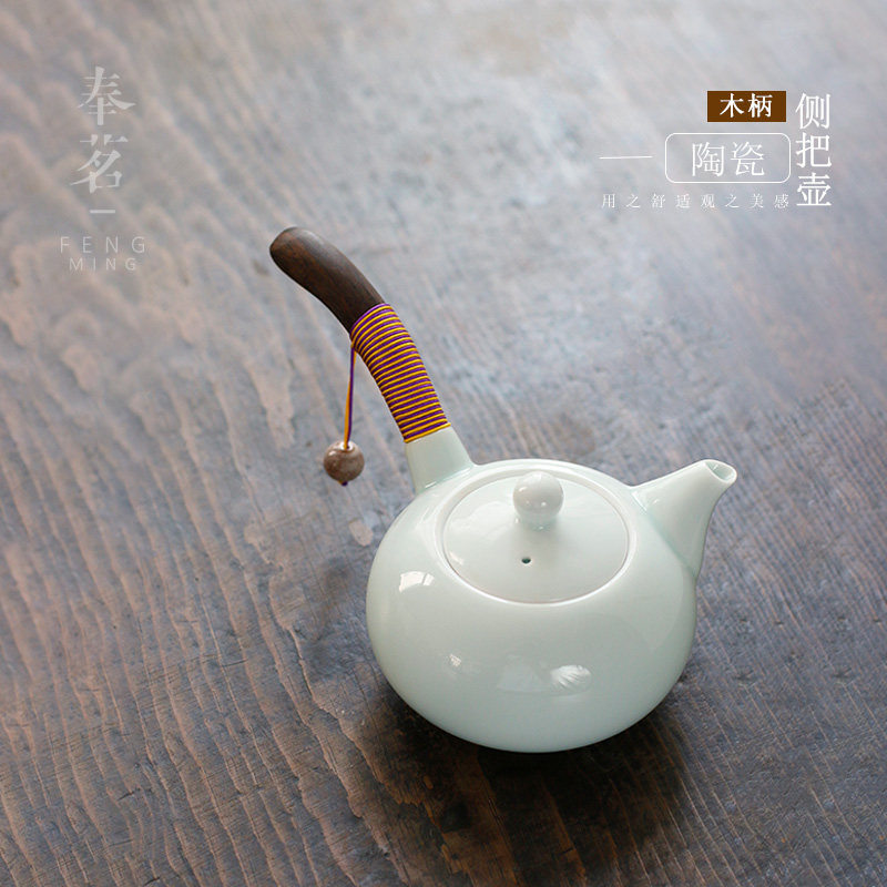 Fengming Yingqing side handle pure handmade kung fu teapot ceramic celadon handle single pot tea maker household set