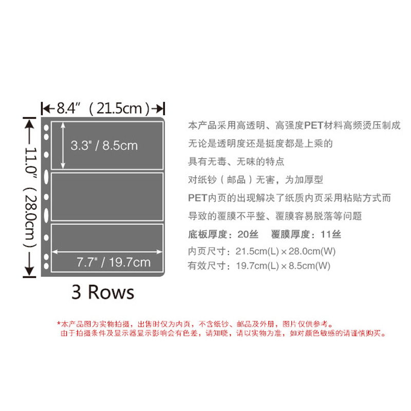 Internal loose-leaf universal nine-hole transparent page 3 rows of stamps coin collection loose-leaf in the collection of banknotes in the collection of banknotes