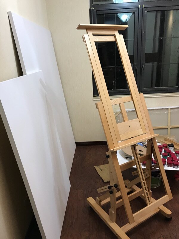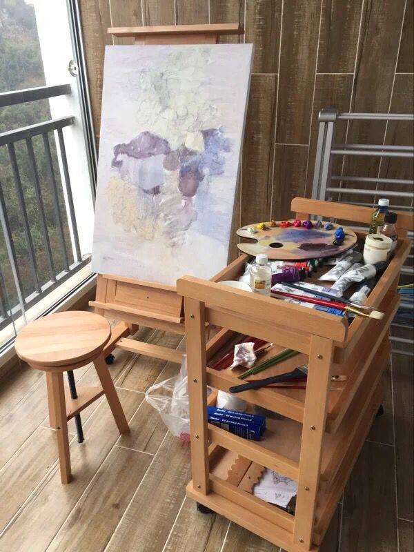 Drawing oil painting and water powder Chinese painting and display