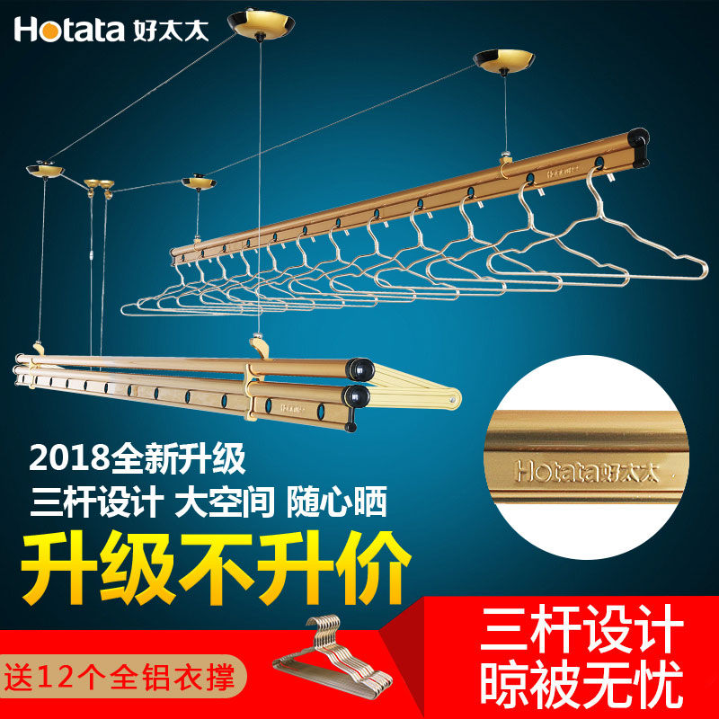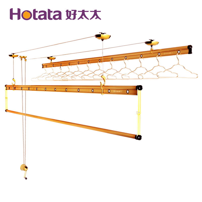Good lady drying rack handshake lift three-pole balcony household cool clothes frame aluminum alloy drying rod double-rod type