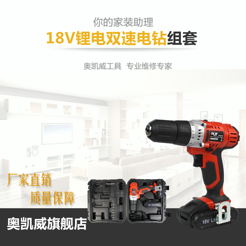 Okayway Industrial Grade 18V Lithium Electric Drill Dual Speed Rechargeable Drill Electric Screwdriver Dual Lithium Battery
