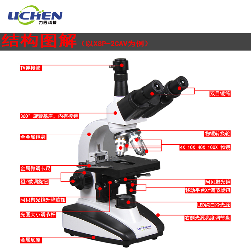 Lichen Science and Technology Bio-electron Microscope Monocular Three-eye Professional Laboratory Test 1600 Times Optical Microscope