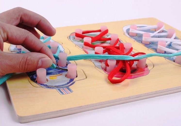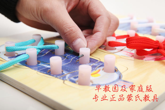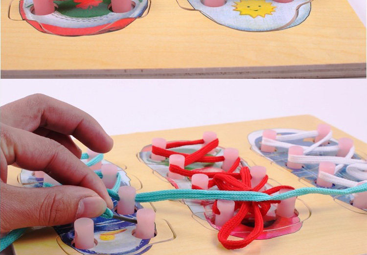 Professional Early teaching teaching aids Montessori tie shoelace wearing shoe jointed threading plate jigsaw puzzle 3-7-year-old children's toy