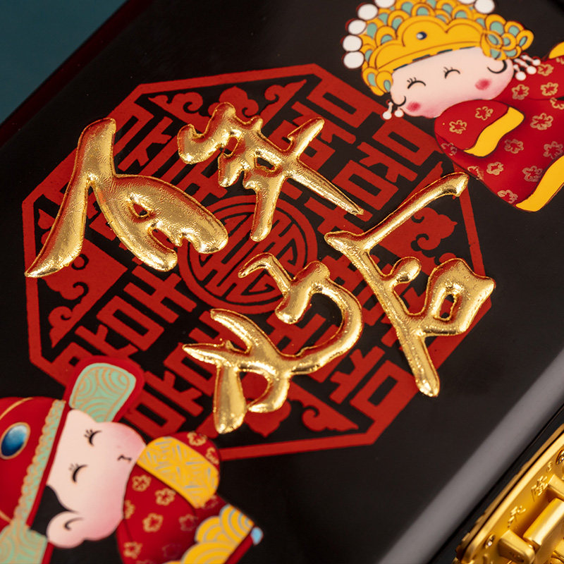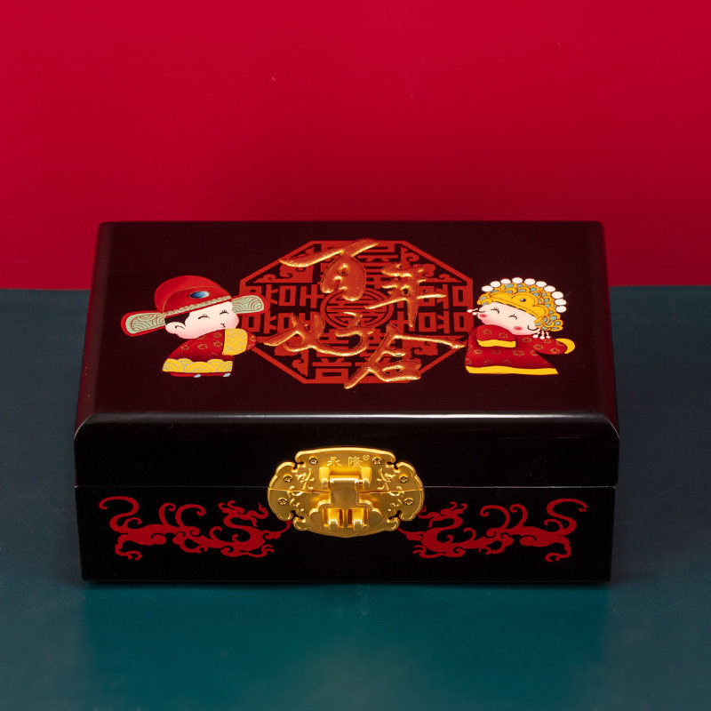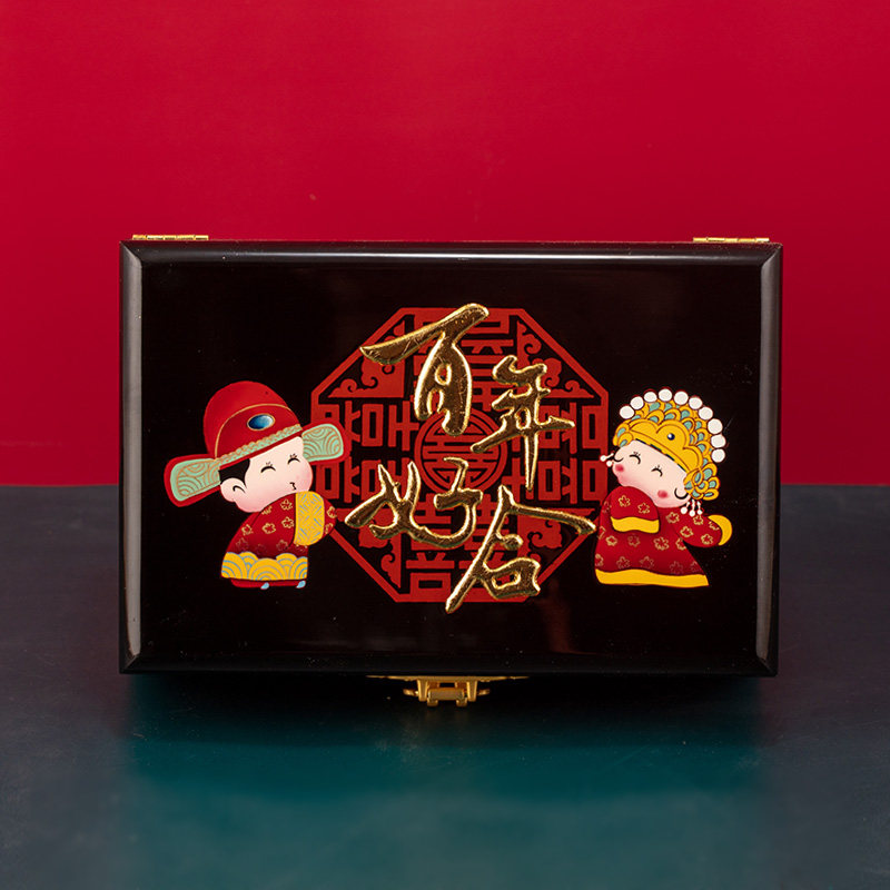 Wedding gift to send the couple practical high-end custom best friend jewelry three gold small exquisite Pingyao lacquerware jewelry box