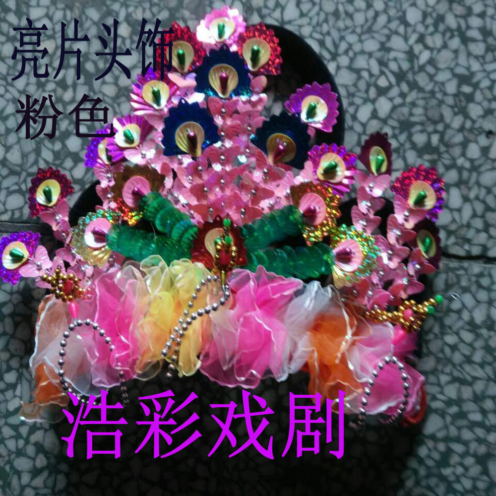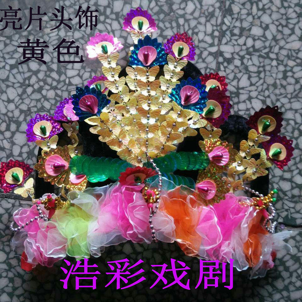 Pink sequin yellow sequin yellow sequin beads head decorated with beads