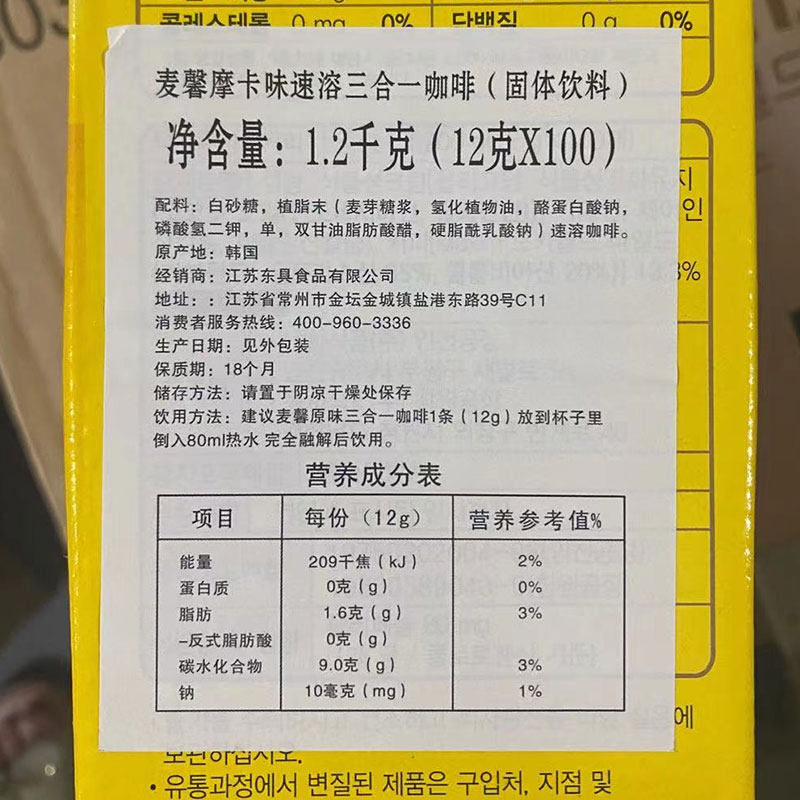 Korea Original Imported Mcxin Maxin Coffee Instant Three-in-one Moka Coffee Powder 100 Bar 1200g