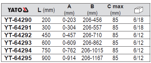 YT-64290 200MMYT-64291 300MMYT-64292 450MMYT-64293 600MMYT-6