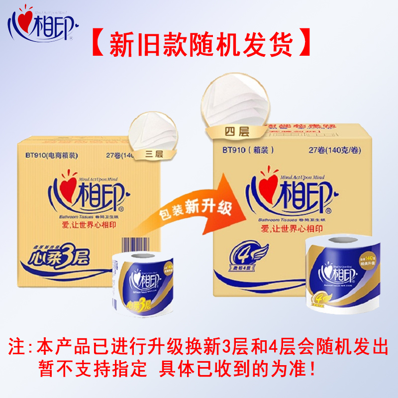 Heart phase Inprint drum toilet paper with core roll paper tesoft thickened 4-layer 140g whole box 27 volume BT910