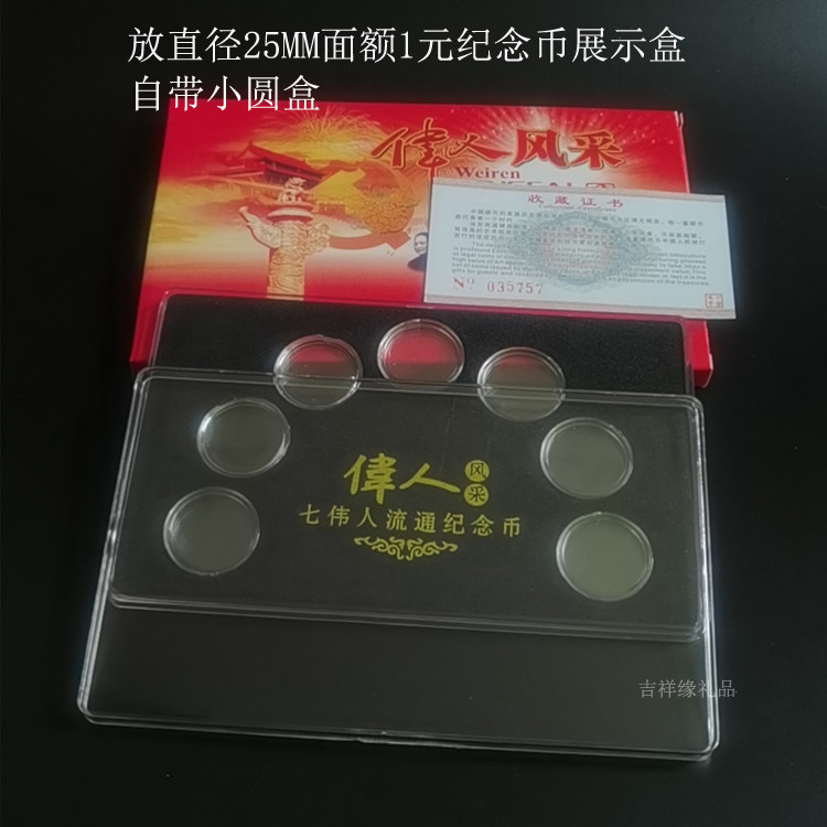 Seven great people's commemorative coin collection box RMBone Wee people coin numismatic square box 25mm round case protection box
