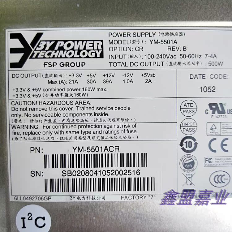 New original warranty one year 3Y YM-5501A 500W 2U server redundant power supply 80PLUS