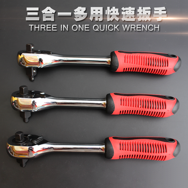 Yixin 72-tooth sleeve ratchet wrench shrinkable three-in-one fast wrench large, medium and small flying wrench hardware tools