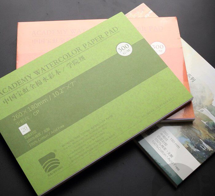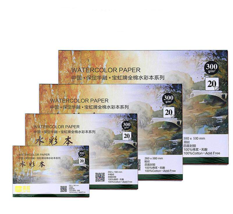 Baohong Watercolor book Four-sided sealing glue pure cotton pulp watercolor paper 200g300g coarse grain medium grain fine grain watercolor sketchbook